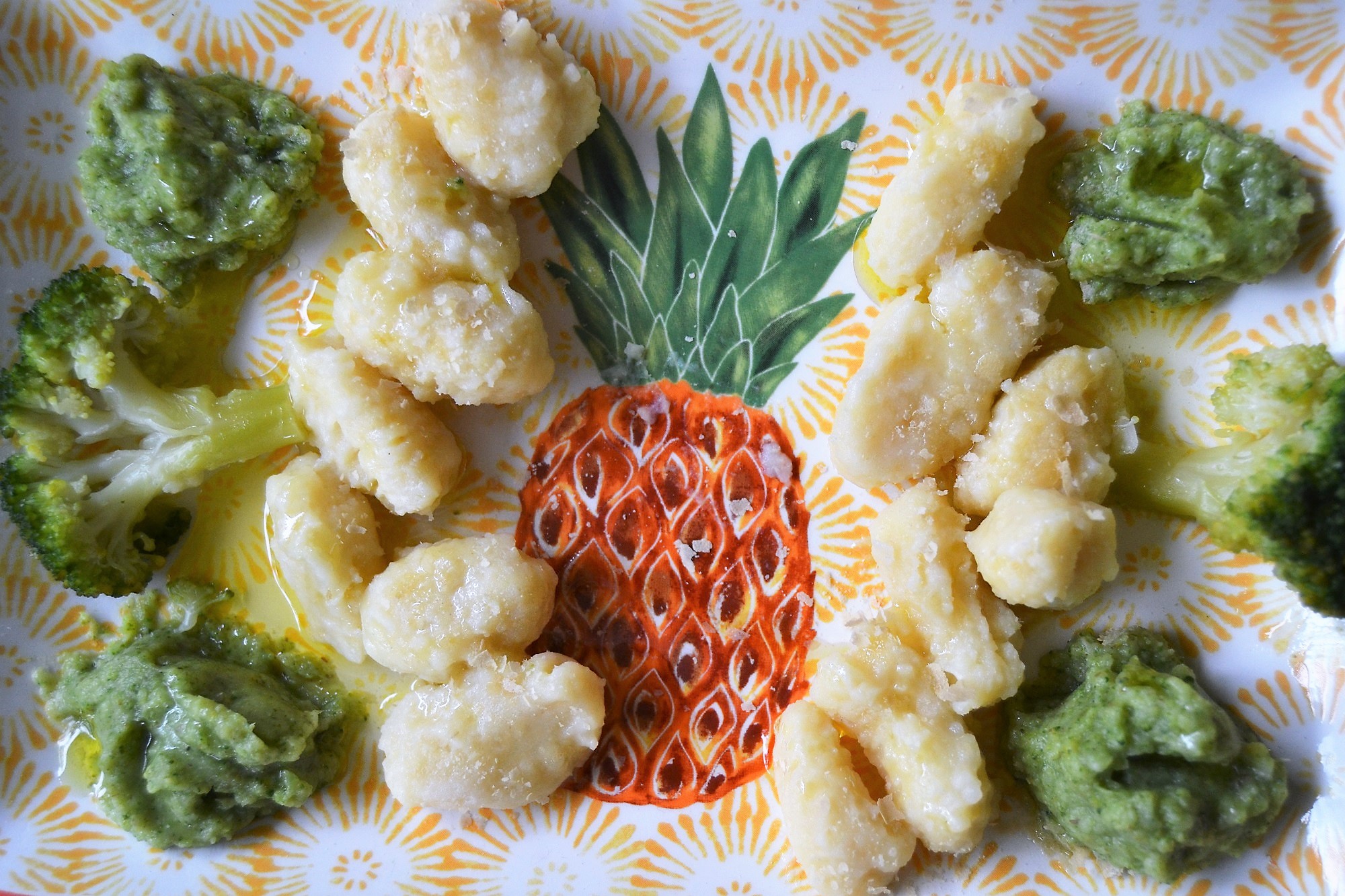Come condimento potete utilizzare quello che preferite, a mio figlio ho lessato 1 broccolo piccolo, frullato alcune cimette con 1 cucchiaino di semi di lino e condito gli gnocchi come in foto.