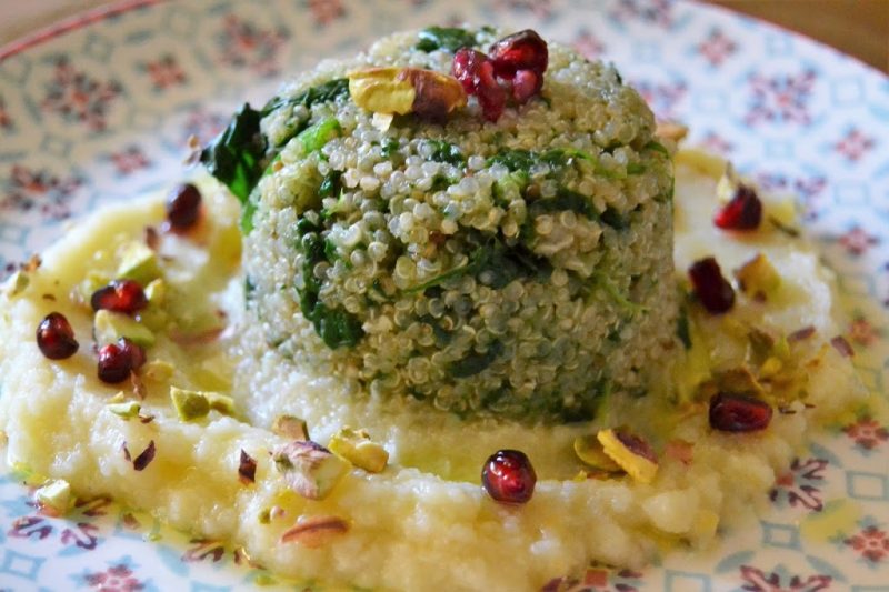 Sformatini di quinoa, spinaci su crema di cavolfiore